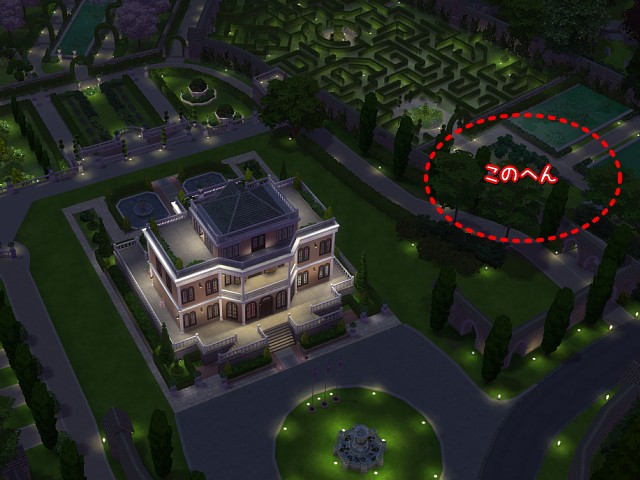 でも、そのへんに色々生えているので、わざわざお金を使いたくないというケチな考えから(笑)、あっちの区画、こっちの区画と、色々行ってみたのですが、私が欲しいと思うものは全部、フォン・ホーント・エステートというお屋敷の赤丸のところにありました。