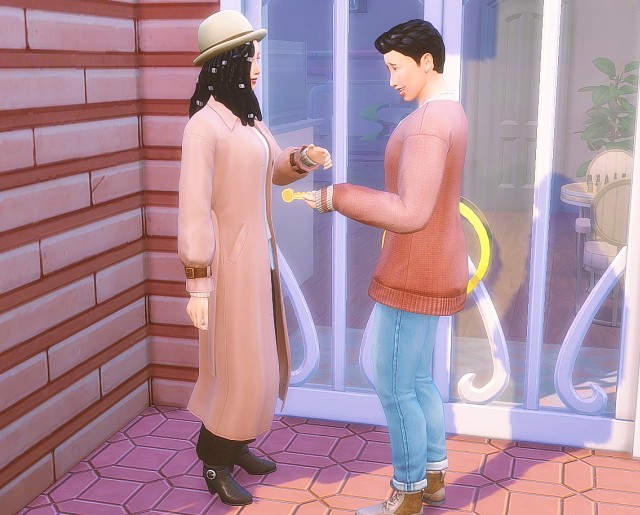 さらに翌日は、学校から帰宅して間もなく、Evergreen Harborのデフォシムでハリス家のジェブくんがプレゼントを持って遊びに来てくれました!