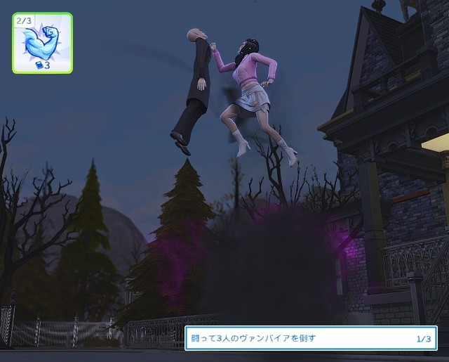 「闘って3人のヴァンパイアを倒す」というのをクリアしたくて、確かスパーリングが出来たよね?と思っていたのですが、シムをクリックしてヴァンパイアカテゴリーをクリックしても、訓練しか選択肢がなく、ヴァンパイアランクを上げないとスパーリング出来ないんだっけ・・・なんて思っていたのですよ。